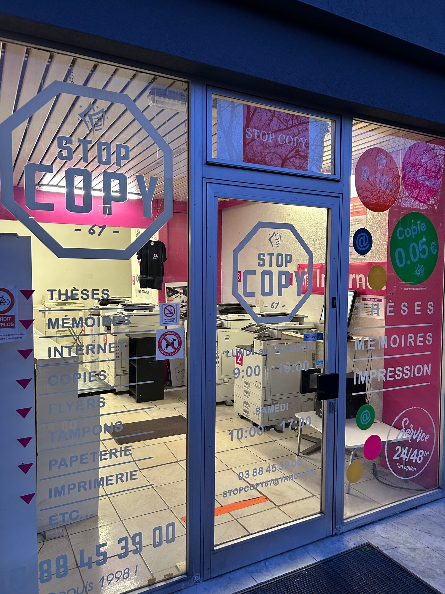 Situé dans le quartier de l'Esplanade En face des facultés Pour les Pro & Etudiants6 rue de Rome 67000 Strasbourg Tél. 03 88 45 39 00 stopcopy67000@gmail.com Lundi au Vendredi 9:00 à 19:00 Samedi de 10:00 à 17:00